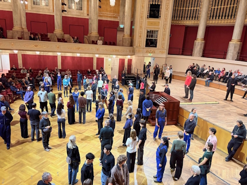 Bei diesem Projekt, das in Kooperation mit der Universität für Musik und darstellende Kunst stattfindet, ist jede/r Teilnehmer:in für sich allein auf der Bühne und trägt eigene Töne zum großen gemeinsamen Klang-Cluster bei. Es handelt sich dabei um Paragraph 7 aus Cornelius Cardews „The Great Learning“ – ein ganz besonderes Chorwerk aus dem 20. Jahrhundert.