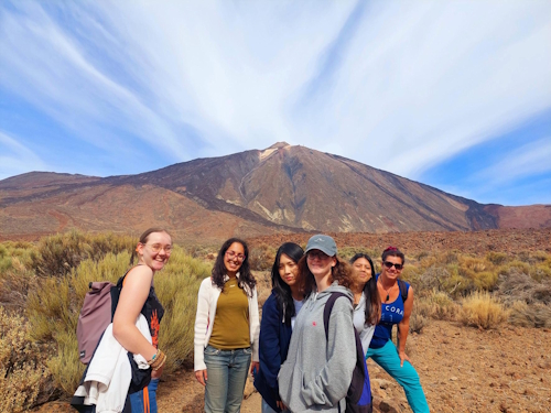 Ein besonderes Highlight war der gemeinsame Ausflug zur Küste: Dort begleiteten Delphine und Pilotwale das Boot – ein wunderschöner Moment, den niemand so schnell vergessen wird! Auch eine Wanderung im Nationalpark rund um den Vulkan Teide stand auf dem Programm. Begeistert erforschten die Schülerinnen die Vulkanlandschaft und lernten dabei viel über die geologischen Besonderheiten der Insel.