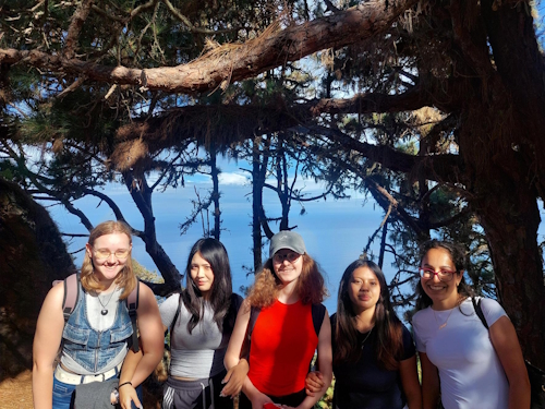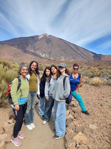 Ein besonderes Highlight war der gemeinsame Ausflug zur Küste: Dort begleiteten Delphine und Pilotwale das Boot – ein wunderschöner Moment, den niemand so schnell vergessen wird! Auch eine Wanderung im Nationalpark rund um den Vulkan Teide stand auf dem Programm. Begeistert erforschten die Schülerinnen die Vulkanlandschaft und lernten dabei viel über die geologischen Besonderheiten der Insel.